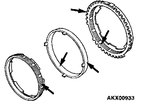 2. Check that the synchronizer cone surfaces are not roughened, damaged or worn.