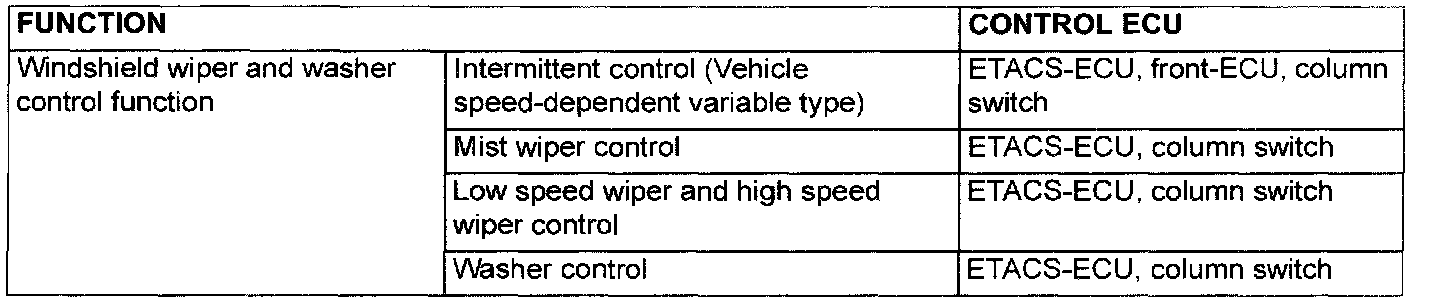 The ECUs affect the functions and control of the windshield wiper and washer.