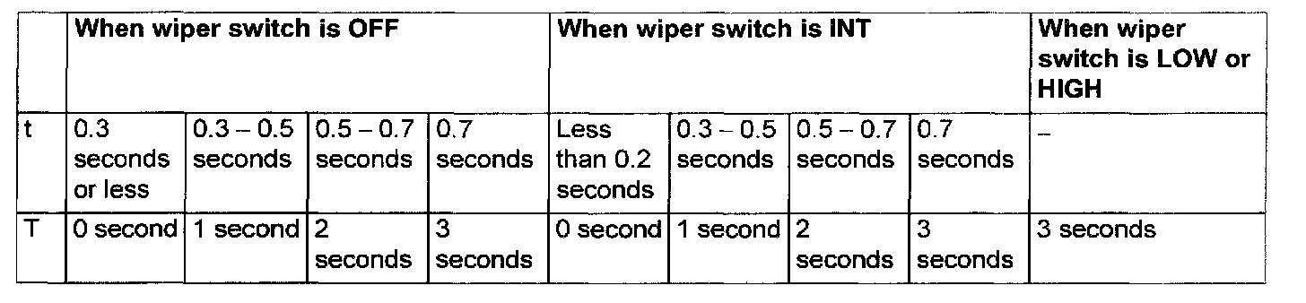 NOTE: The wiper drive signal output time varies according to the conditions. Refer to the table for details.