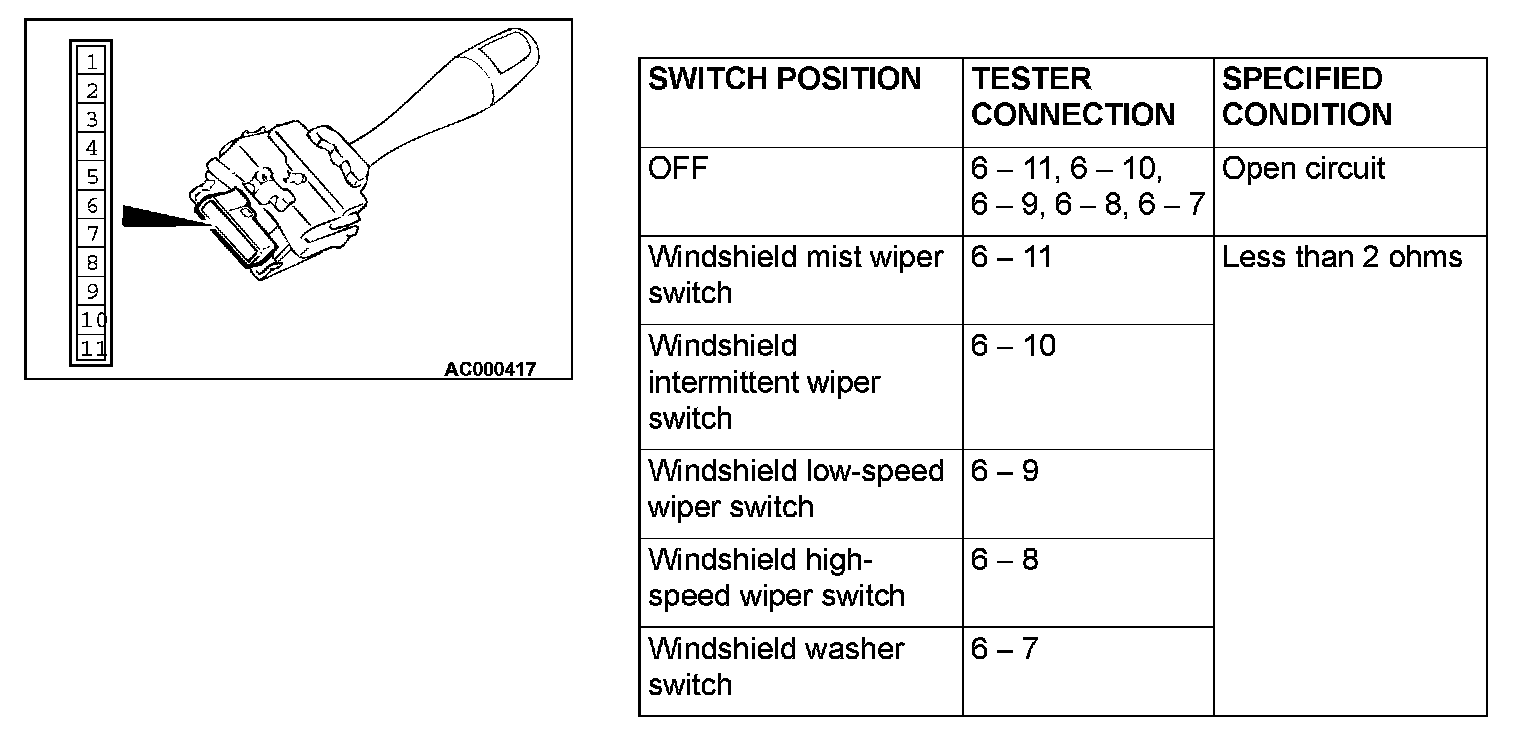 Windshield Wiper and Windshield Washer Switch Check