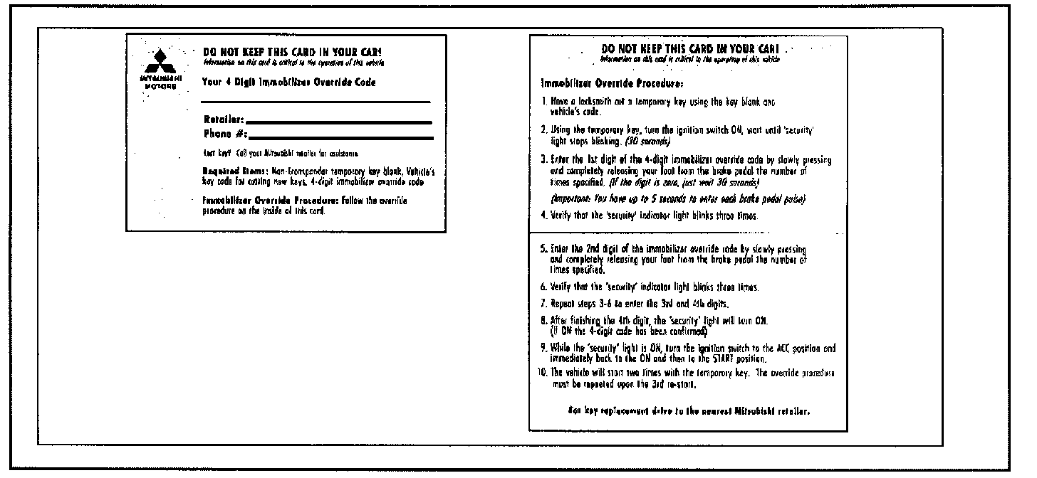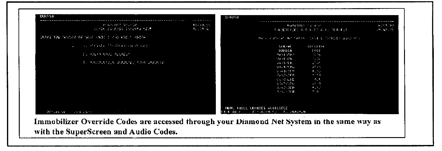 2. Using the Immobilizer ECU serial number, use MEDIC (or one of your dealership's DDL or MDL systems) to call up Diamond Net System, Diamond Dealer Link (DDL), or Mitsubishi Dealer Link (MDL) and retrieve the Immobilizer Override Code number. Record this code. With this code, you can now proceed with the procedures for starting the vehicle using the Immobilizer Override code. It is suggested that you give the customer this code in case it is needed again in the future.