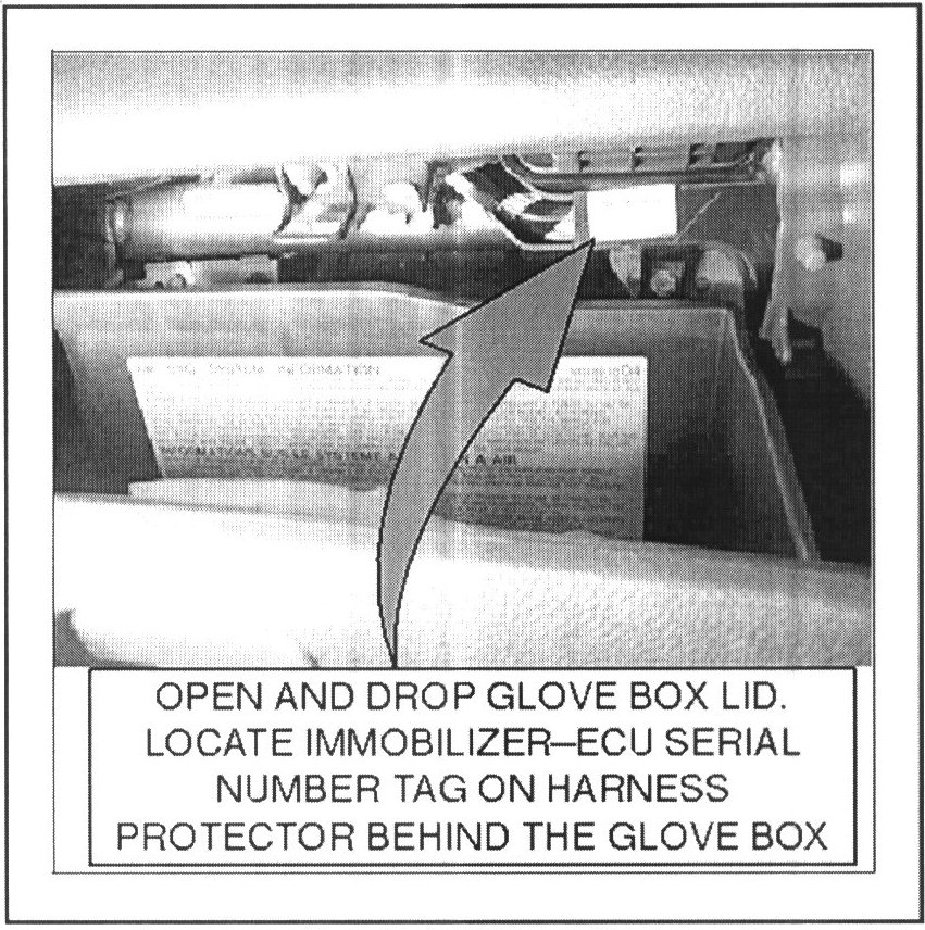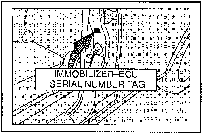 1. Locate the Immobilizer ECU serial number (S/N:----- ) on the vehicle. Record this serial number.