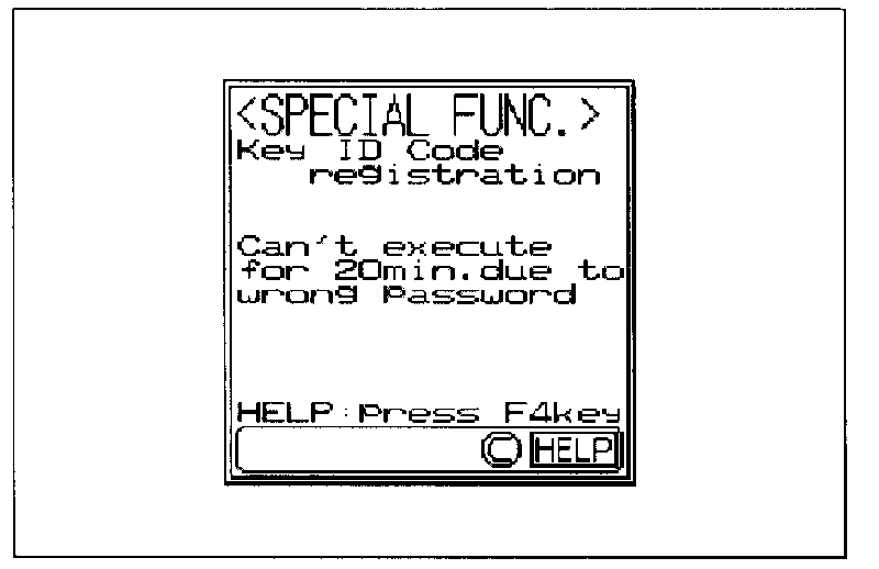 3. If an incorrect password is input five times in a row, this screen is displayed and the immobilizer-ECU switches to "Unauthorized operation, start-prevention mode."