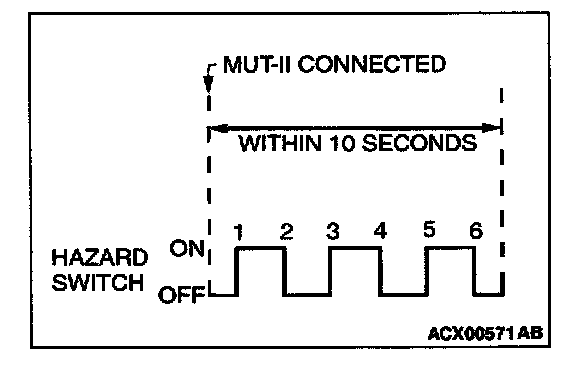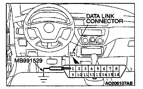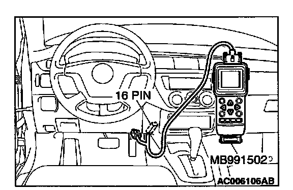 CAUTION: To prevent damage to scan tool MB991502, always turn the ignition switch to "LOCK" (OFF) position before connecting or disconnecting scan tool MB991502.