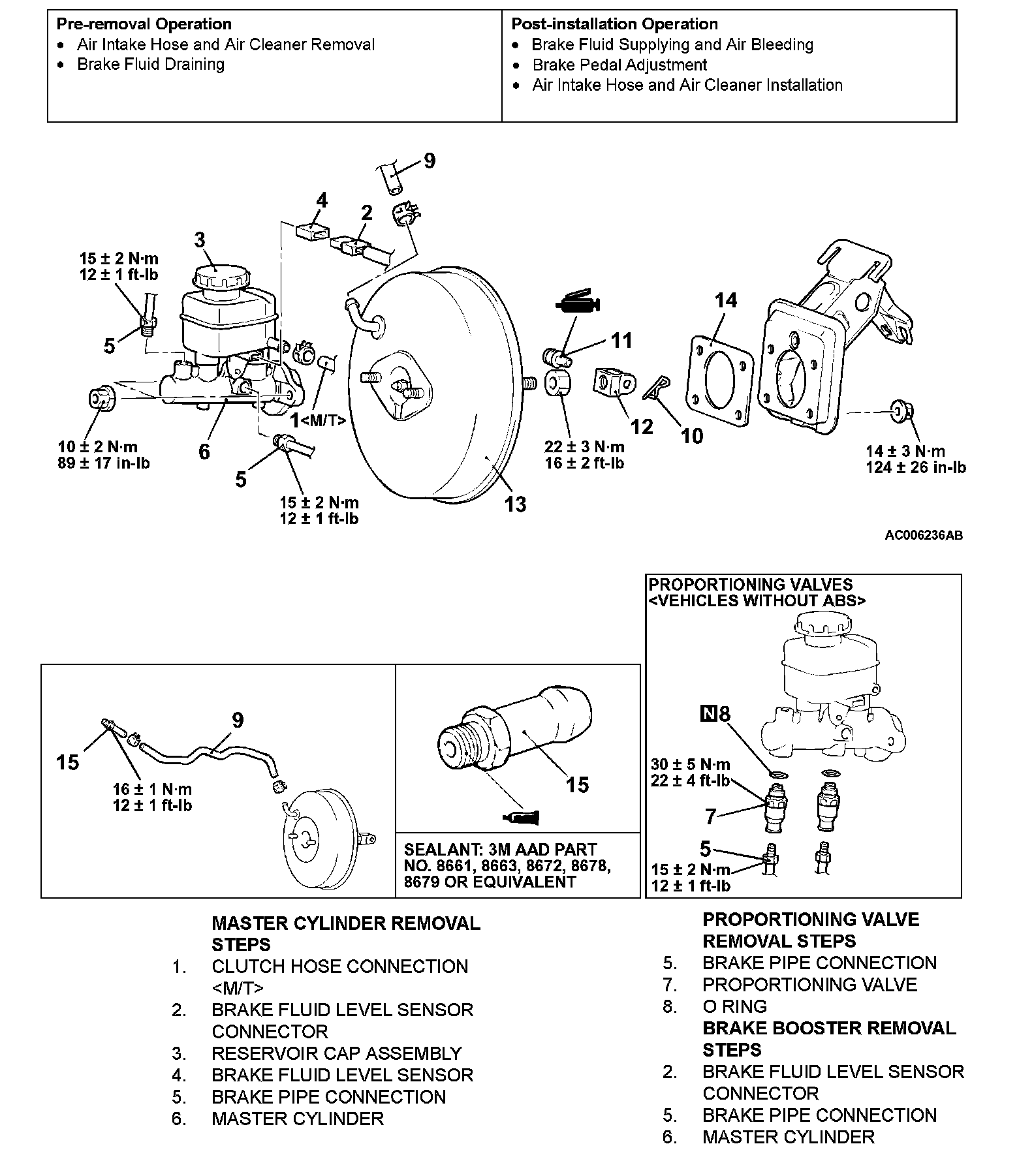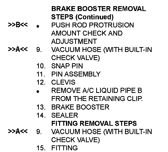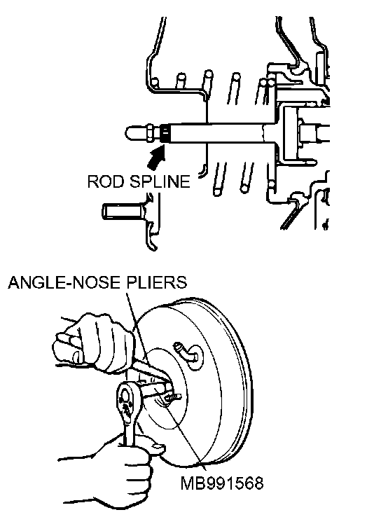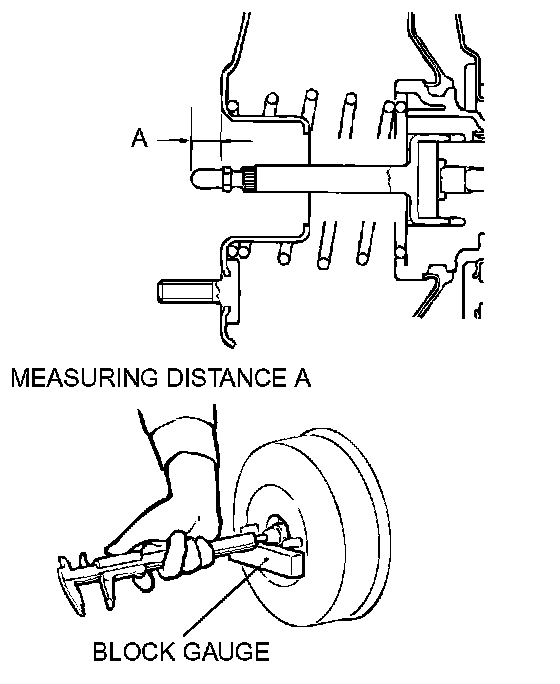 NOTE: When a negative pressure of 66.7 kPa is applied to the brake booster, the push rod should protrude 10.28 - 10.53 mm (0.405 - 0.415 inch).