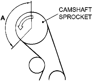 CAUTION: As the purpose of this procedure is to apply the proper amount of tension to the tension side of the timing belt by using the cam driving torque, turn the crankshaft only by the amount given below. Be sure not to turn the crankshaft in the opposite direction (counter clockwise).