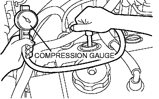7. Crank the engine with the throttle valve fully open and measure the compression pressure.