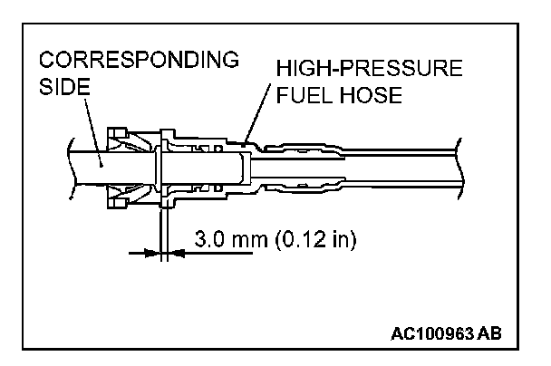CAUTION: Snap the high-pressure fuel hose one-touch joint into place, then pull back slightly on the hose to assure it is secure. However, the connection should have a play of approximately 3.0 mm (0.12 inch).