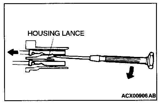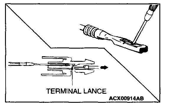 Loosely engaged terminals can be repaired by removing the female terminal from the connector housing and raising its lance to establish better engagement. Removal of the connector terminal used for MFI and INVECS-11 A/T control circuits can be done in the following manner.