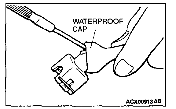 3. Press the contact point of the male terminal down by holding a screwdriver [1.4 mm (0.06 inch) width] as shown in the figure.