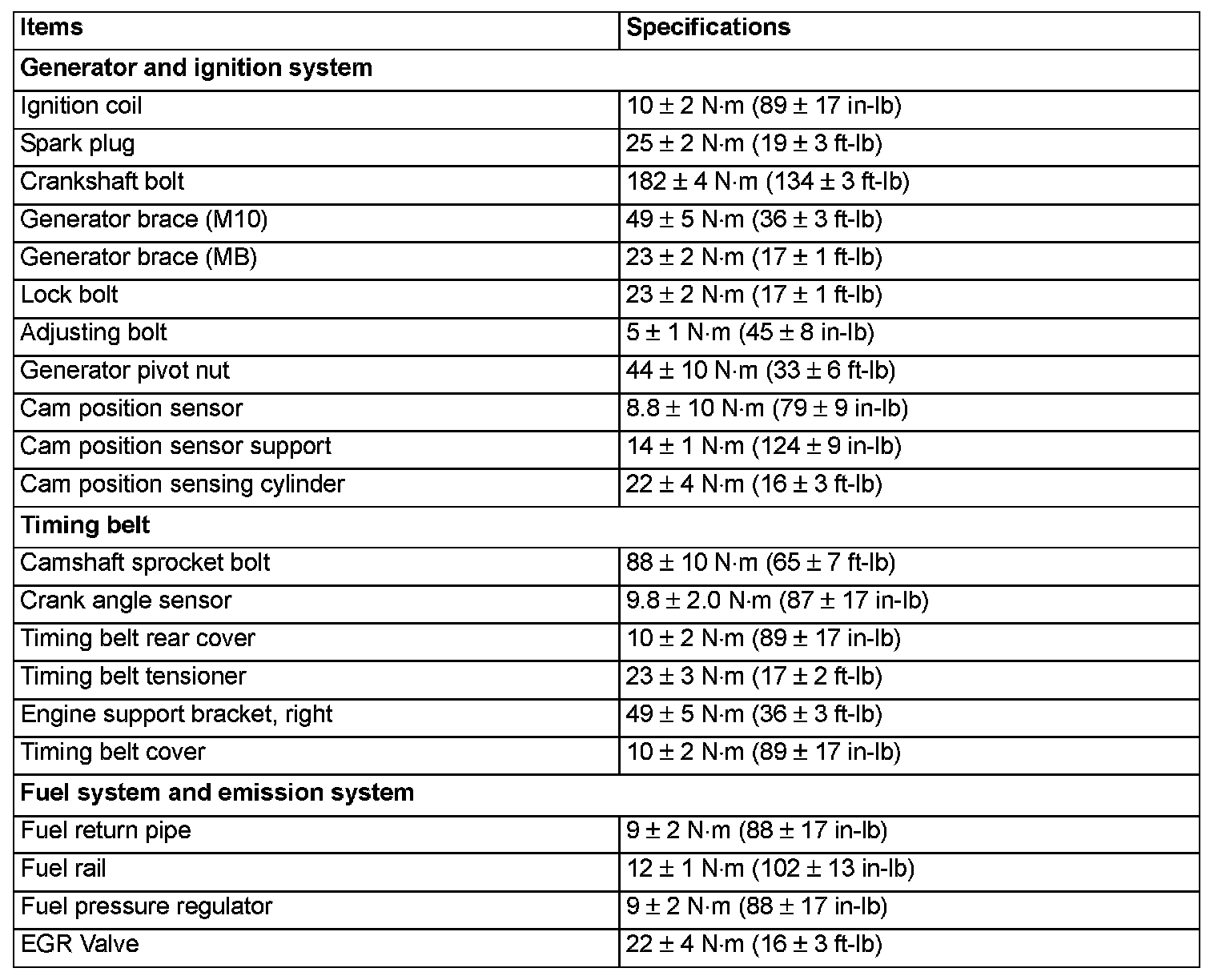 Torque Specifications