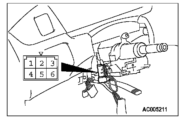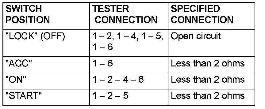 Disconnect ignition switch connector C-87 without removing the ignition switch and steering lock cylinder. Then check the continuity.