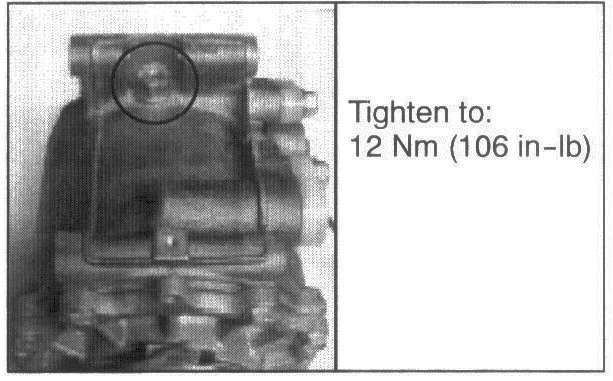 2. Remove the high-pressure relief valve from the top of the A/C compressor. Install the new valve and tighten to 12 Nm (106 in.lb).