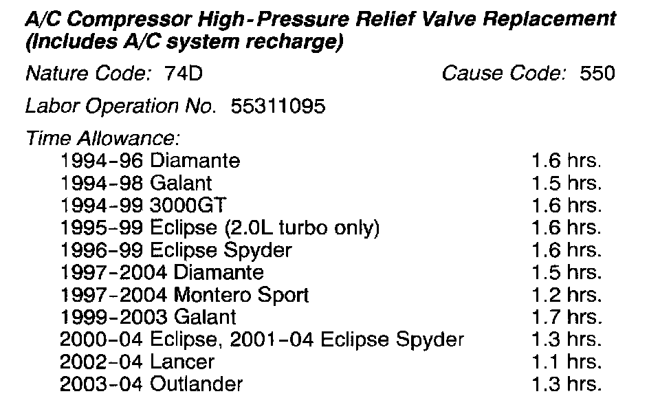 There are two different types of high-pressure relief valves used for 1999-2003 Galant, 2000-04 Eclipse, and 2001-04 Eclipse Spyder The relief valve will be either gold or silver One relief valve of each color will be included in service part kit MN177247 When replacing the valve, the dealer technician must confirm the color of the valve on the vehicle and then select the same colored valve from the kit.