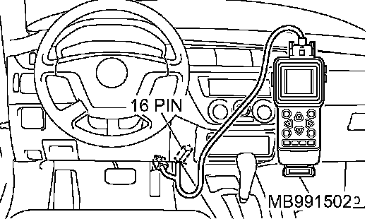 1. Connect scan tool MB991502 to the data link connector.