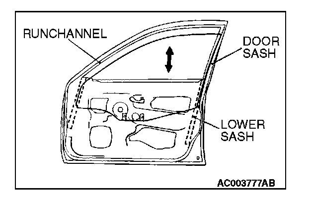 GLASS SLIDING MECHANISM CHECK AND ADJUSTMENTIf the window glass automatically starts moving downwards at the wrong time while it is being raised, carry out the following adjustment or replacement procedures.