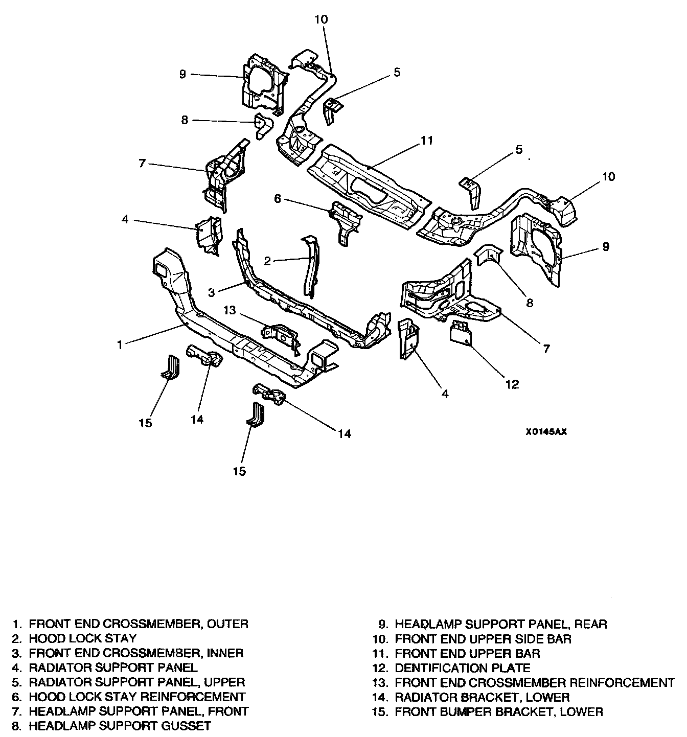 Large front end upper bars and headlamp support panel fronts with a separate structure and high rigidity have been adopted in the headlamp supports in order to improve the overall rigidity of the headlamp supports.