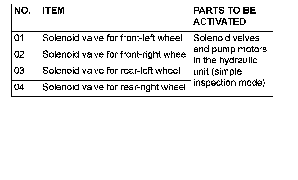 NOTE: If the ABS-ECU is inoperative, actuator testing cannot be carried out.