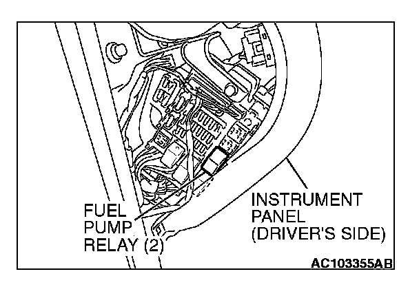 2. Disconnect the fuel pump relay (2).