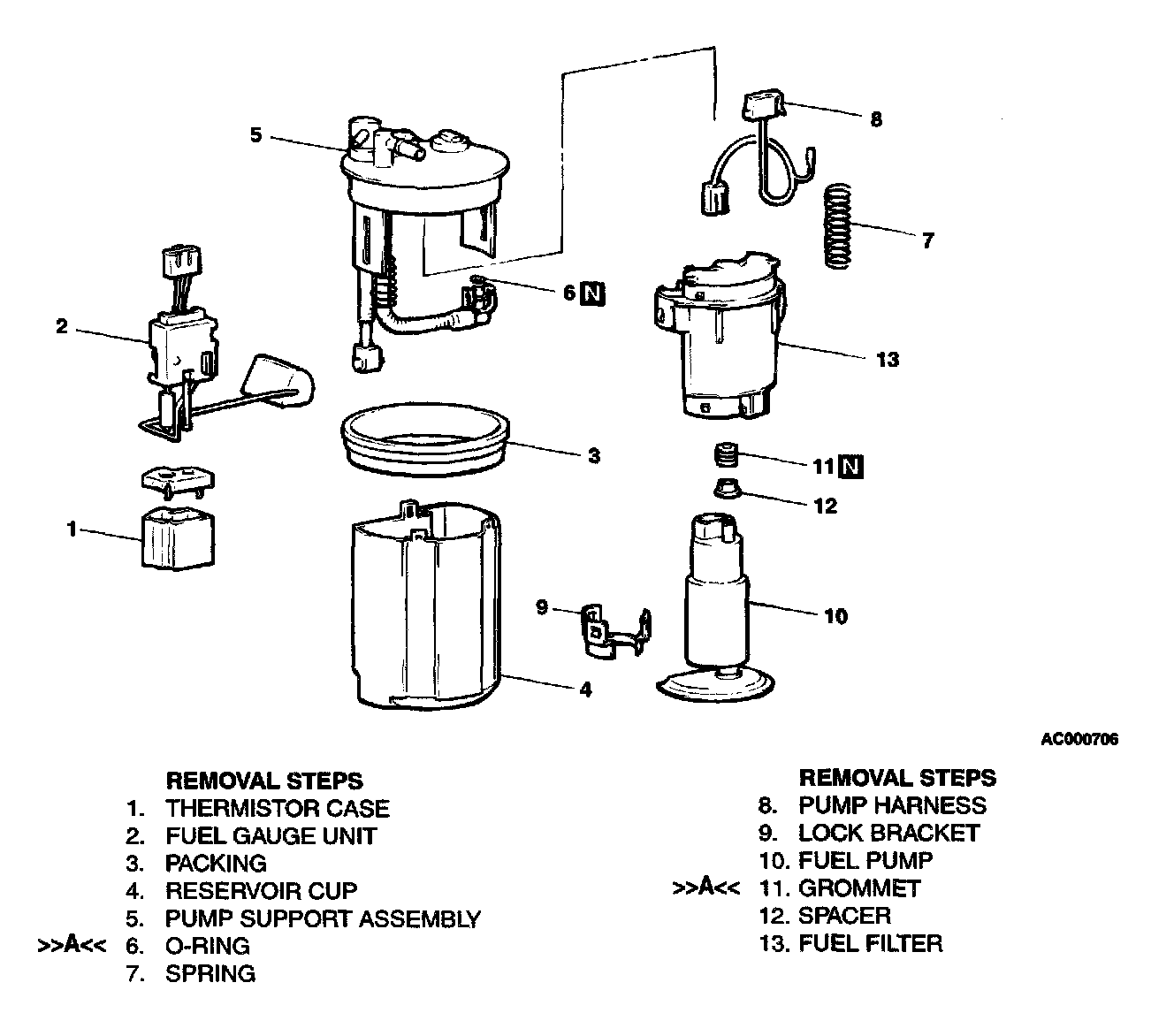 2000-2004 Eclipse models have adopted a fuel pump module which includes a fuel filter.
