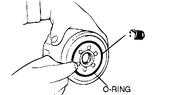 6. Apply a small amount of engine oil to the O-ring of the new oil filter.