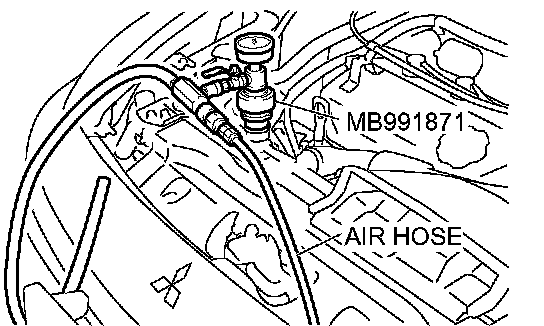 8. By referring to the section on coolant, select an appropriate concentration for safe operating temperature within the range of 30 to 60%. Use special tool MB991871 to refill the coolant. A convenient mixture is a 50% water and 50% antifreeze solution [freezing point: -31°C (-32.8°F)].