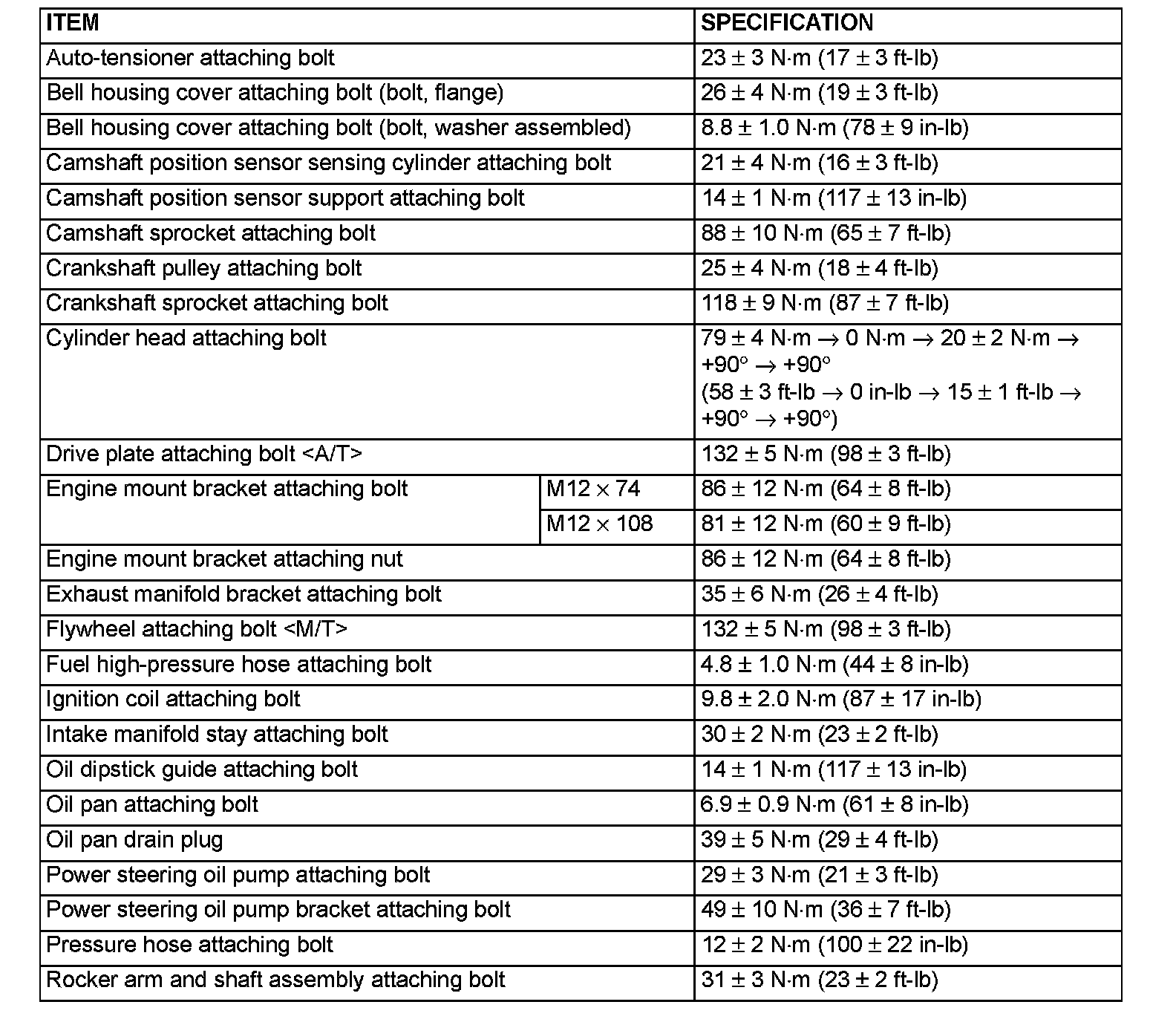 Fastener Tightening Specifications
