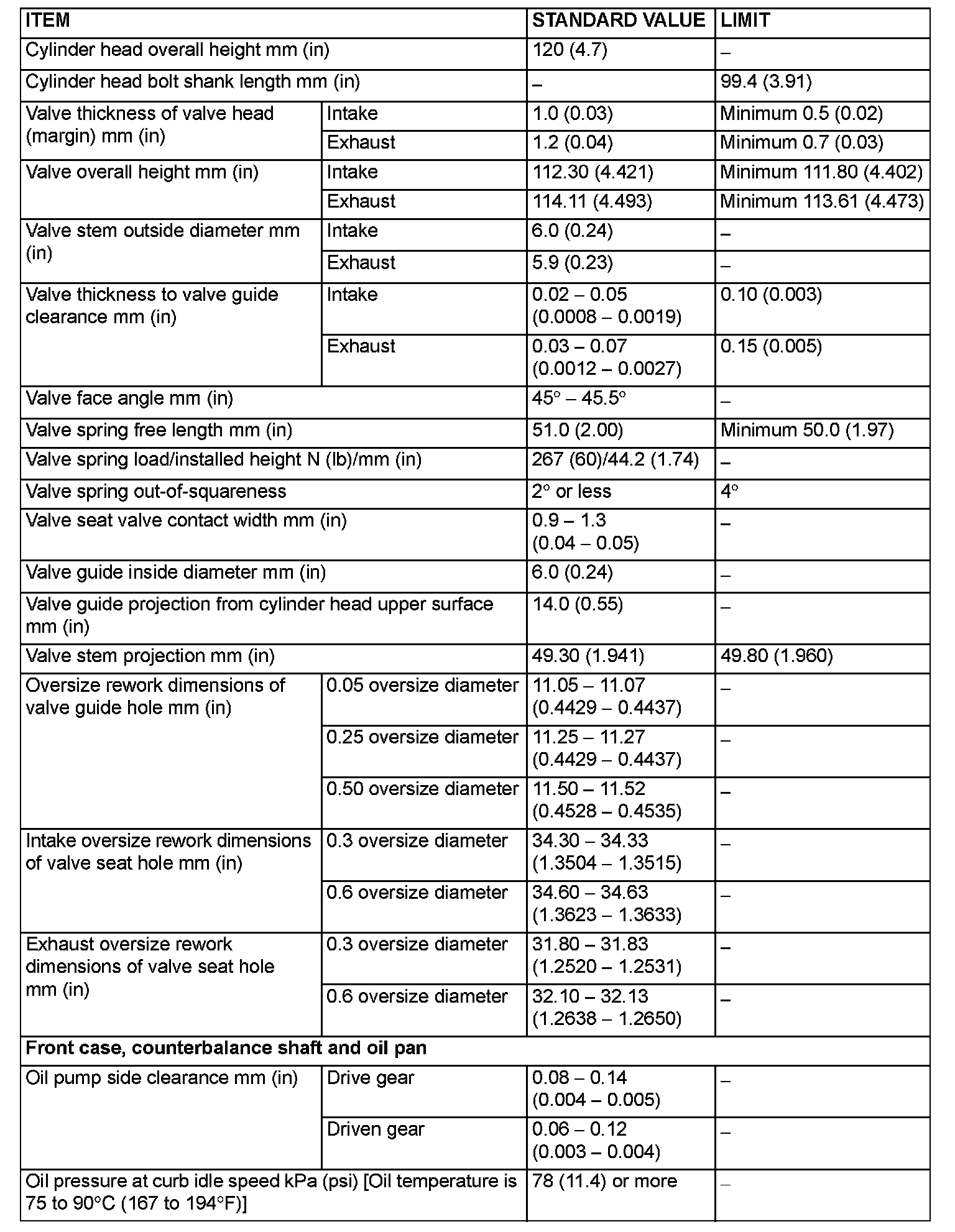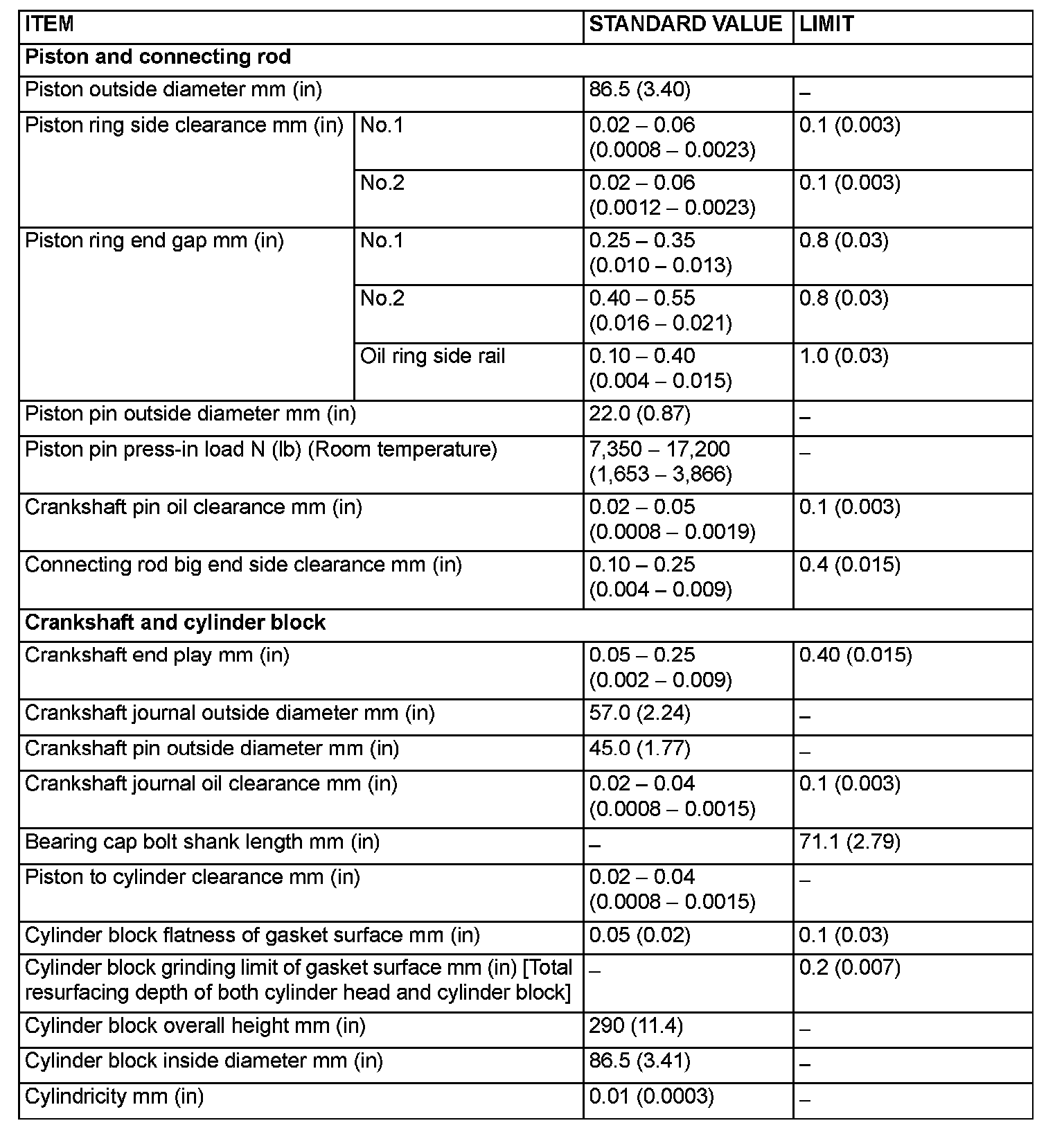Engine-Overhaul Specifications