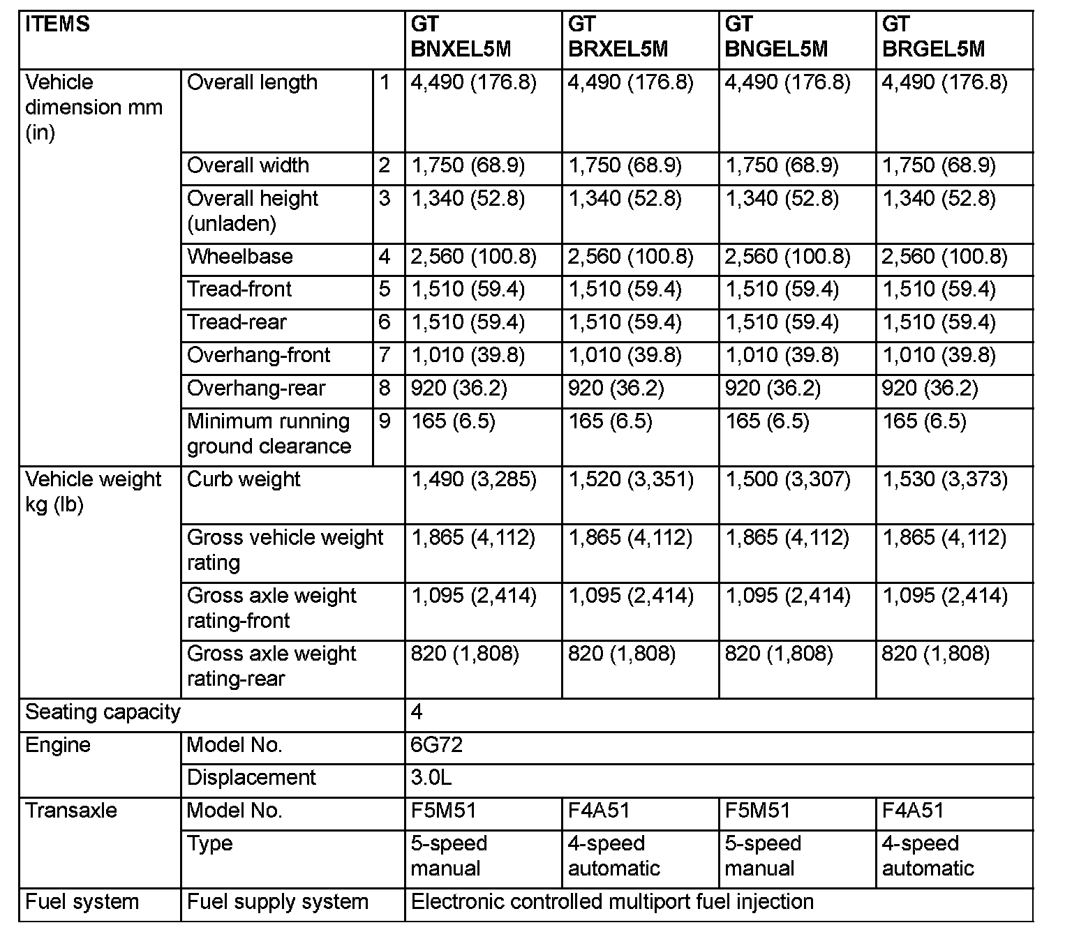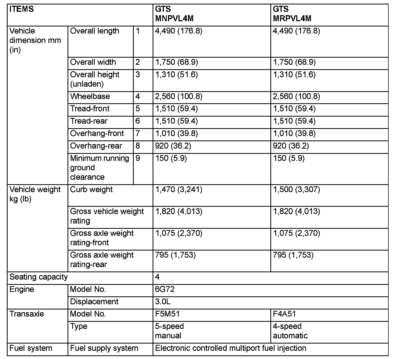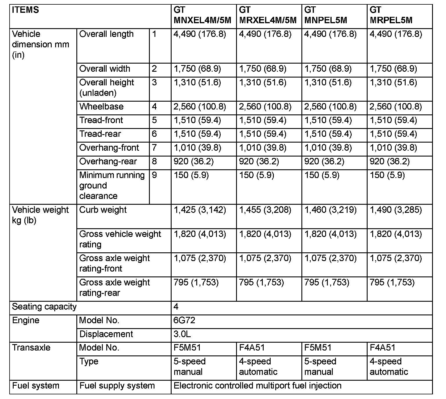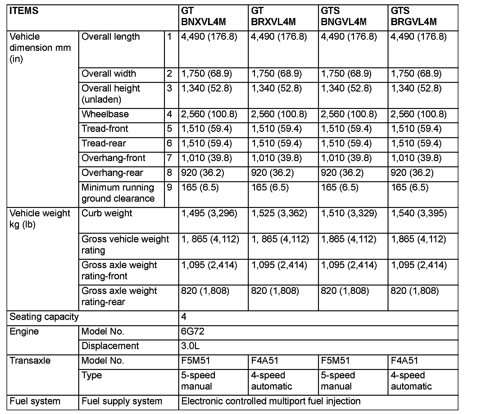 GENERAL SPECIFICATIONS (Model with 3.0L Engine with Variable Induction System)