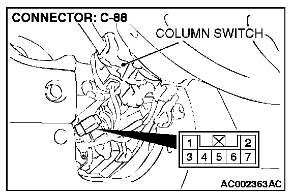 Disconnect key reminder switch connector C-88 without removing the ignition switch and steering lock cylinder. Then check the continuity.