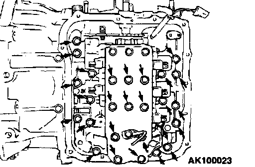 12. Remove the valve body mounting bolts (27 pieces).