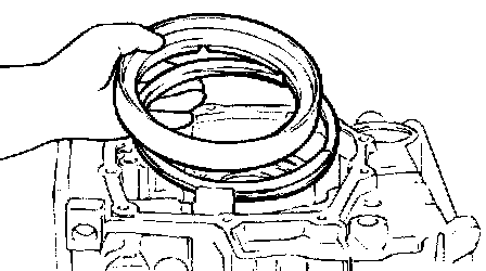 4) Remove the one-way clutch inner race, O-ring, spring retainer, return spring and low-reverse brake piston.