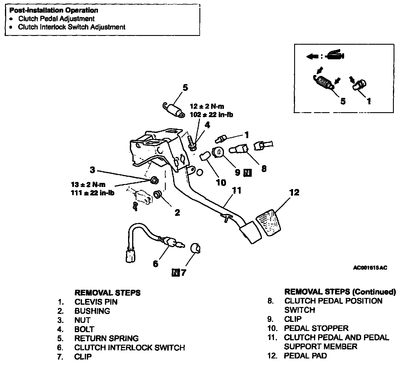 Clutch Pedal Assembly: Service and Repair