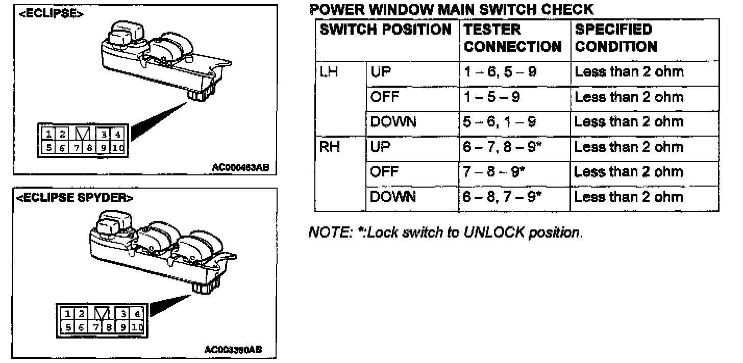 Power Window Main Switch Check: