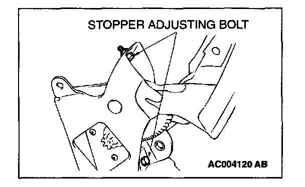 Fully open or close the top, then adjust the stopper adjusting bolt so it contacts the flange as shown in the illustration.