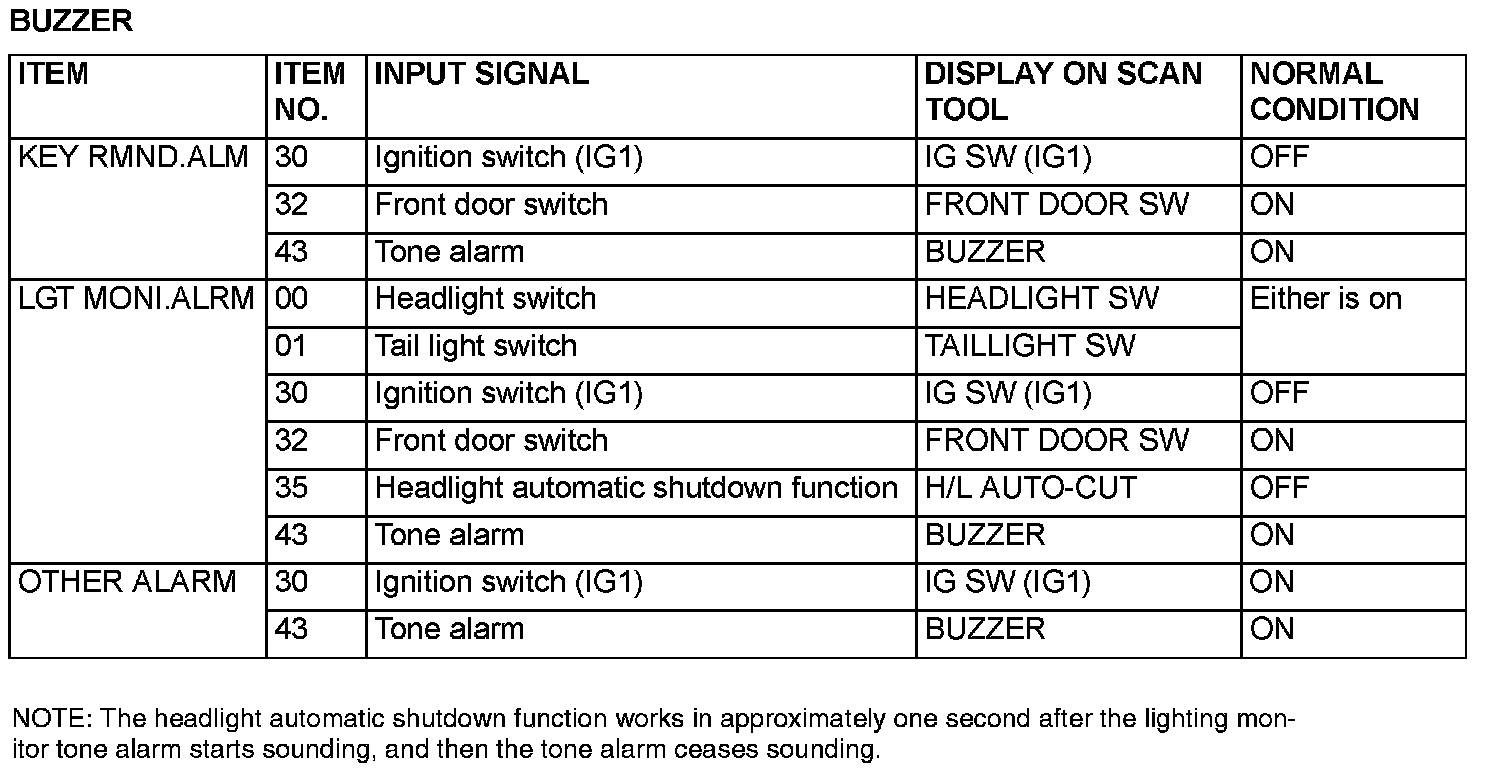 The table shows the service data and their normal condition, which are displayed during the "Data List."