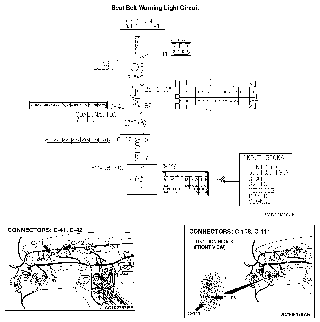 - The ETACS-ECU operates the seat belt warning light according to the following switch signals and input signal: