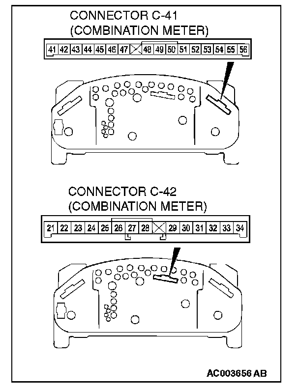 1. Disconnect combination meter connector C-41, and measure at the wiring harness side.