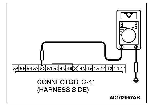 STEP 8. Measure at combination meter connector C-41 in order to check the ignition switch (IG1) line of the power supply to the combination meter.
