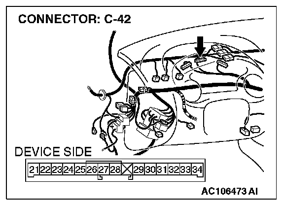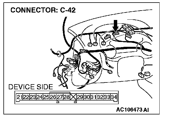 STEP 11. Check combination meter connector C-42 and ETACS-ECU connector C-118 for damage.
