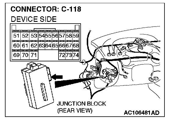 1. Disconnect ETACS-ECU connector C-118, and measure at the wiring harness side.