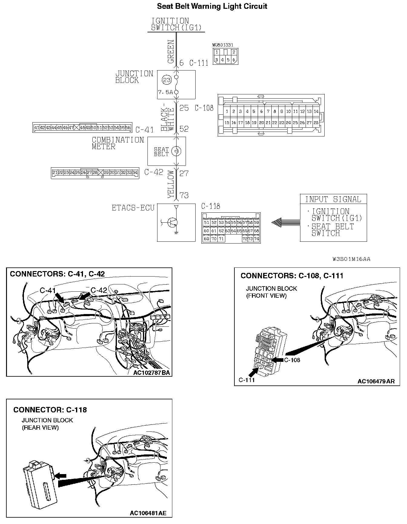 STEP 4. Check at ETACS-ECU connector C-118 in order to check the ground circuit to the seat belt warning light.