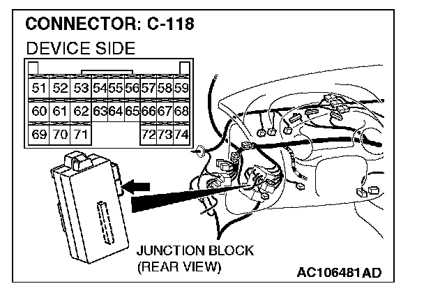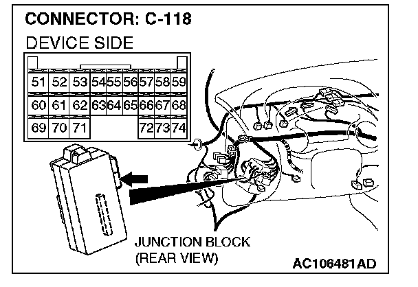 1. Disconnect ETACS-ECU connector C-118, and measure at the wiring harness side.