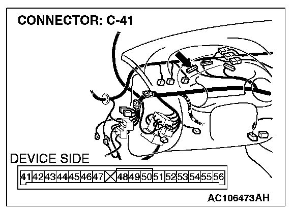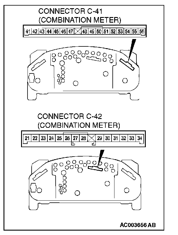1. Disconnect combination meter connector C-41, and measure at the wiring harness side.