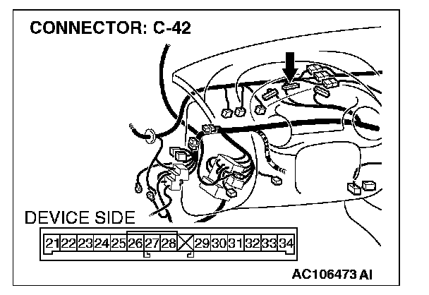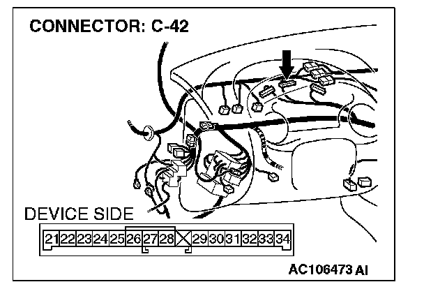 STEP 11. Check the wiring harness between combination meter connector C-42 (terminal 27) and ETACS-ECU connector C-118 (terminal 73).