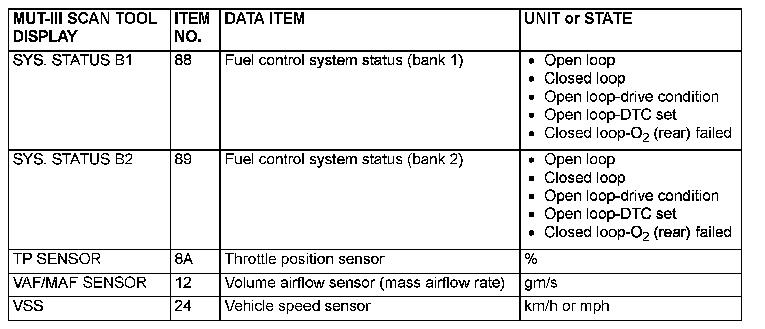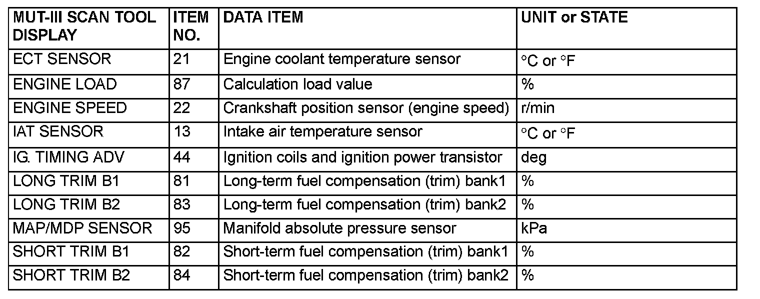NOTE: As for diagnostic trouble code P1603, "freeze frame" data is not memorized.