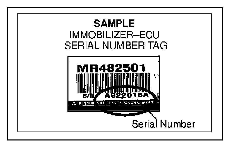 1. Locate the Immobilizer ECU serial number (S/N: --------) on the vehicle. Record this serial number.