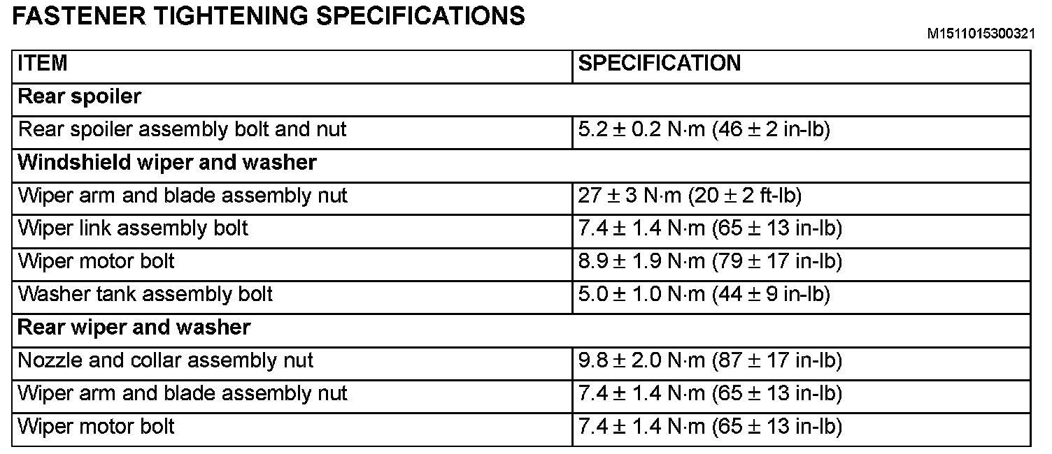 Fastener Tightening Specifications: