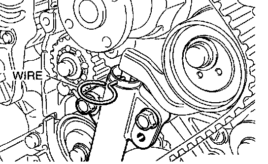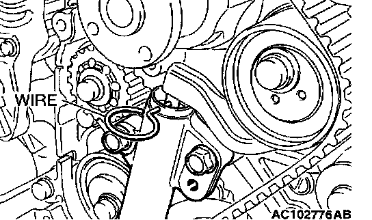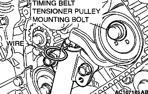 7. Remove wire or pin inserted to timing belt tensioner.