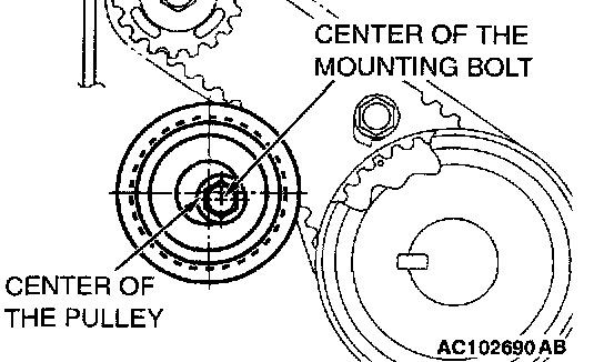 CAUTION: Always check the tightening torque of the crank shaft pulley center bolt when turning the crack shaft pulley center bolt counterclockwise. Re-tighten if it is loose.